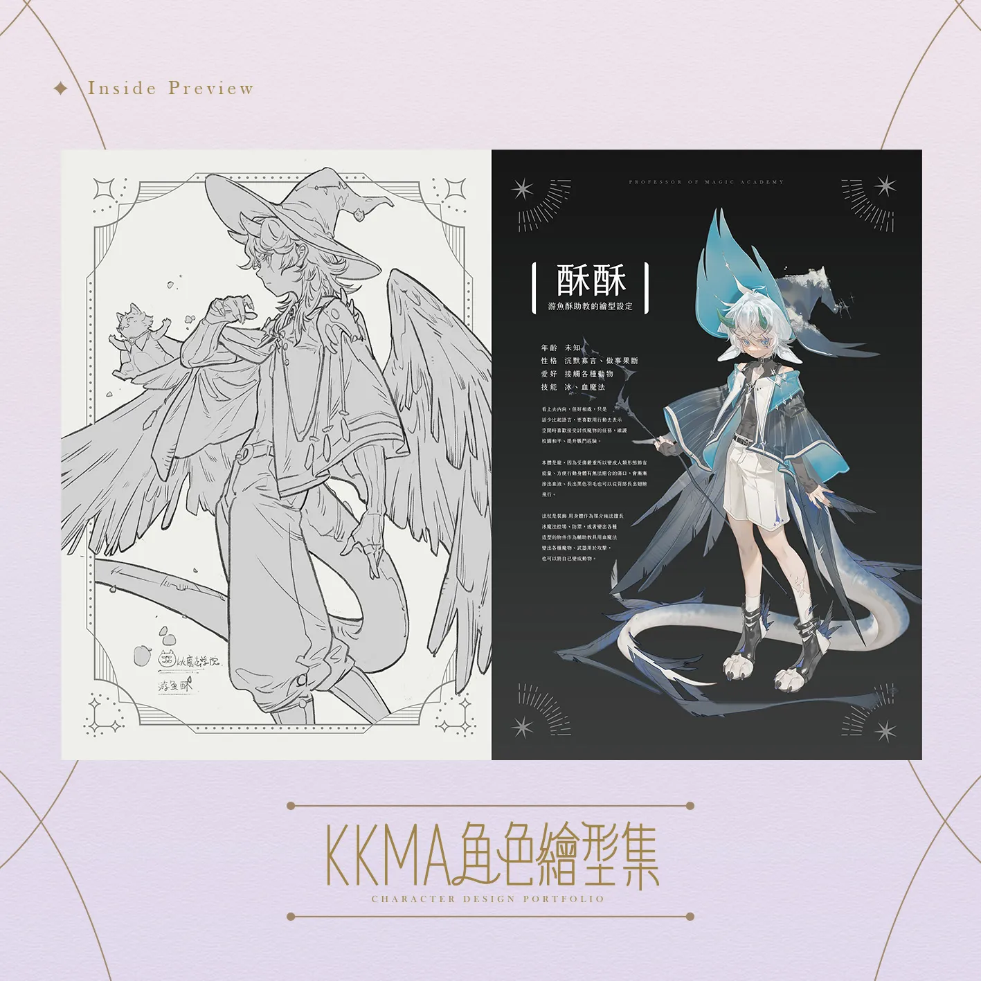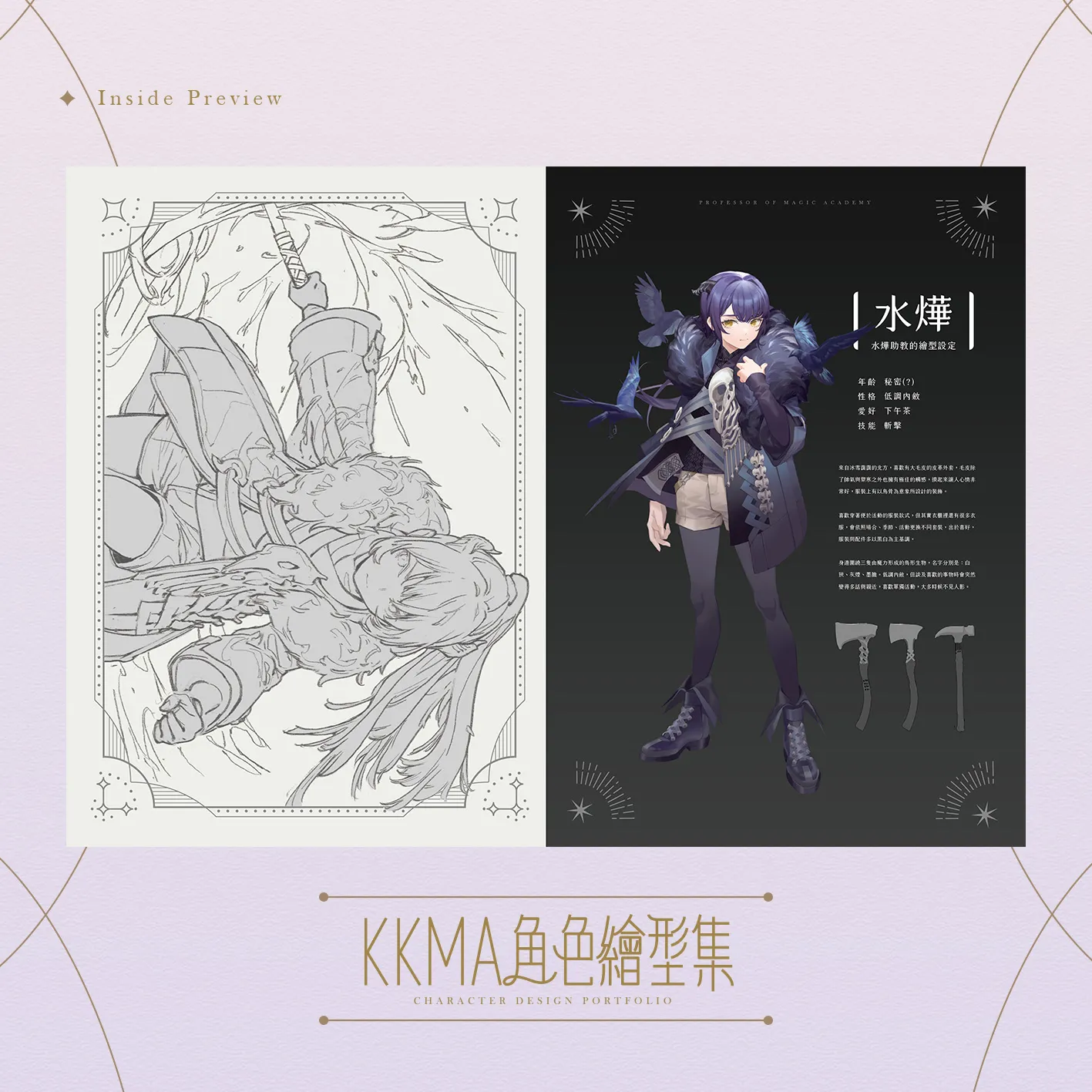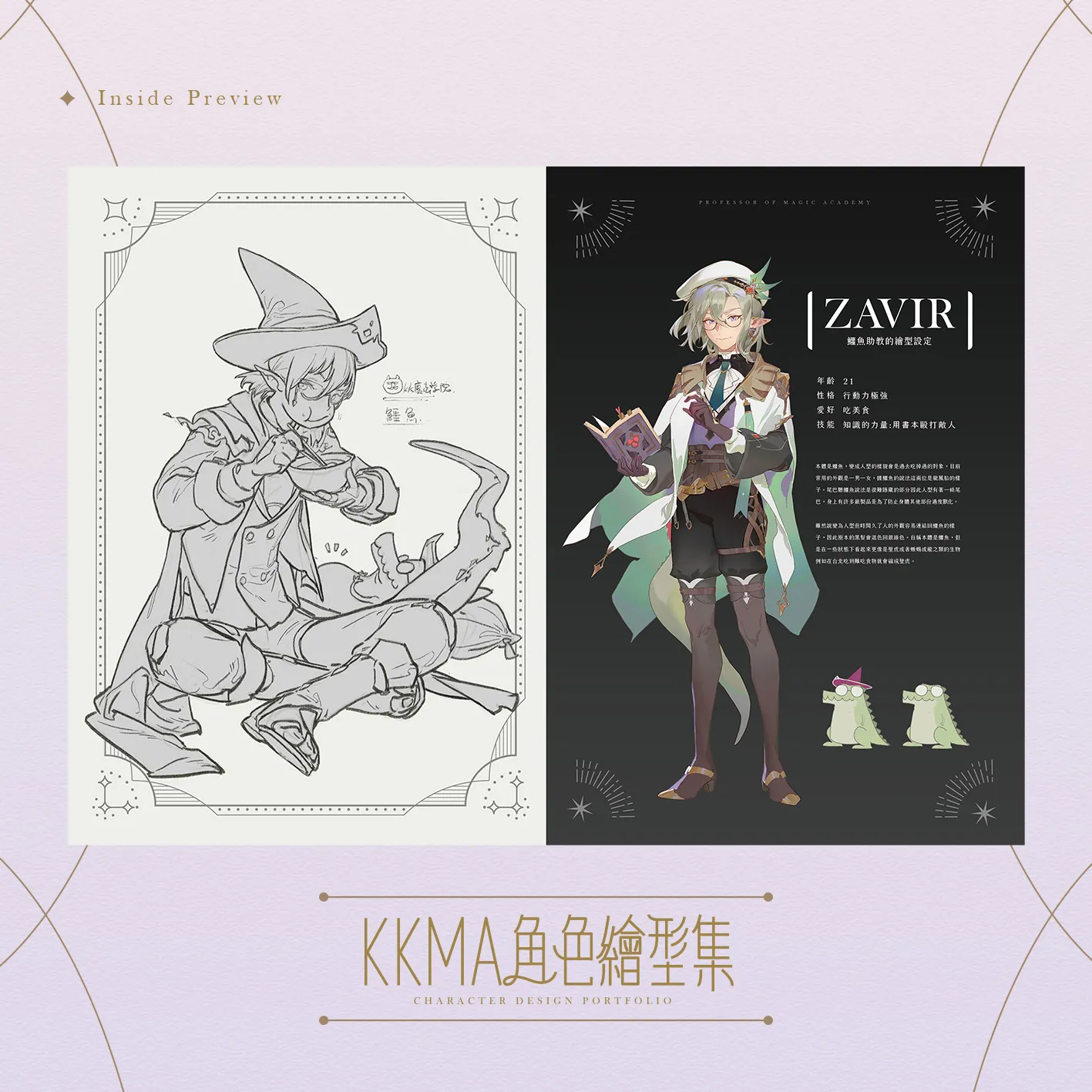 此外,刊物還包含了26位助教的原設定插畫,帶您深入了解他們的背景故事和人物性格,透過助教老師們精緻的插畫,以及更詳盡的人物設定內容,您將更好地認識每位角色的內心世界,這本繪集更是一場細緻的探索之旅,讓您更加融入KK魔法學院的神秘氛圍。