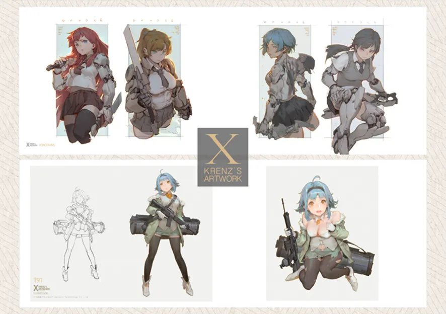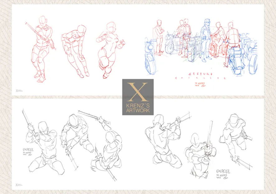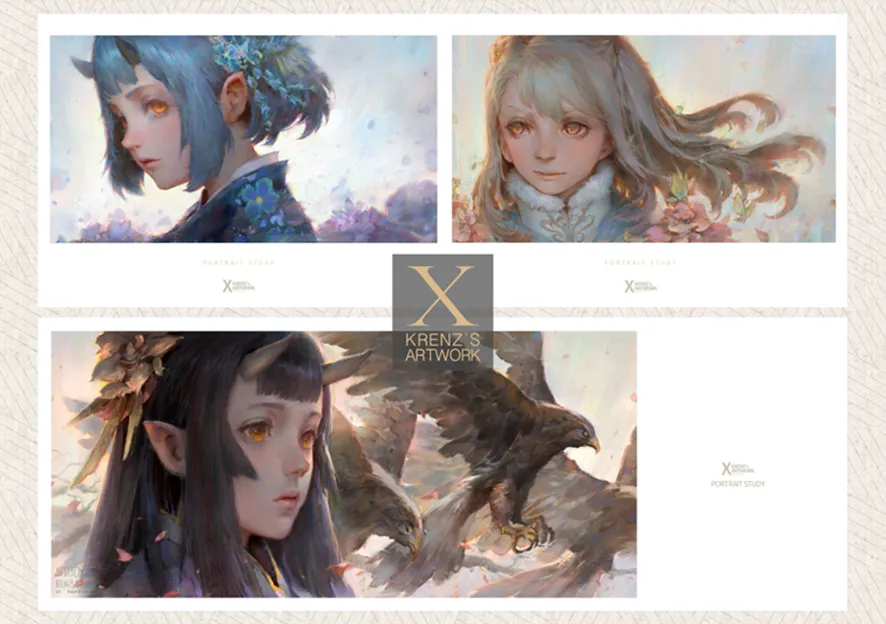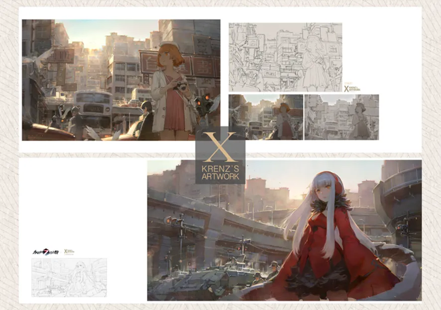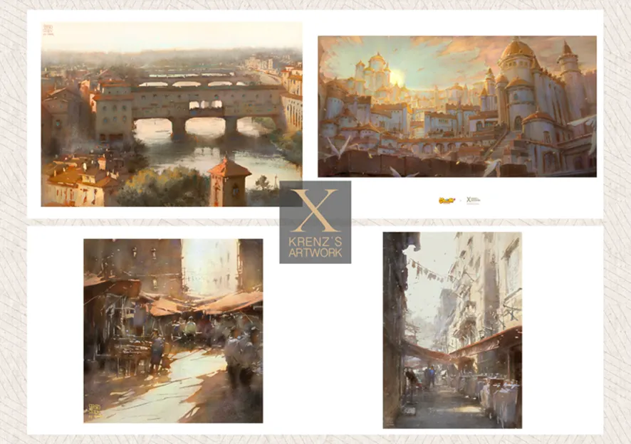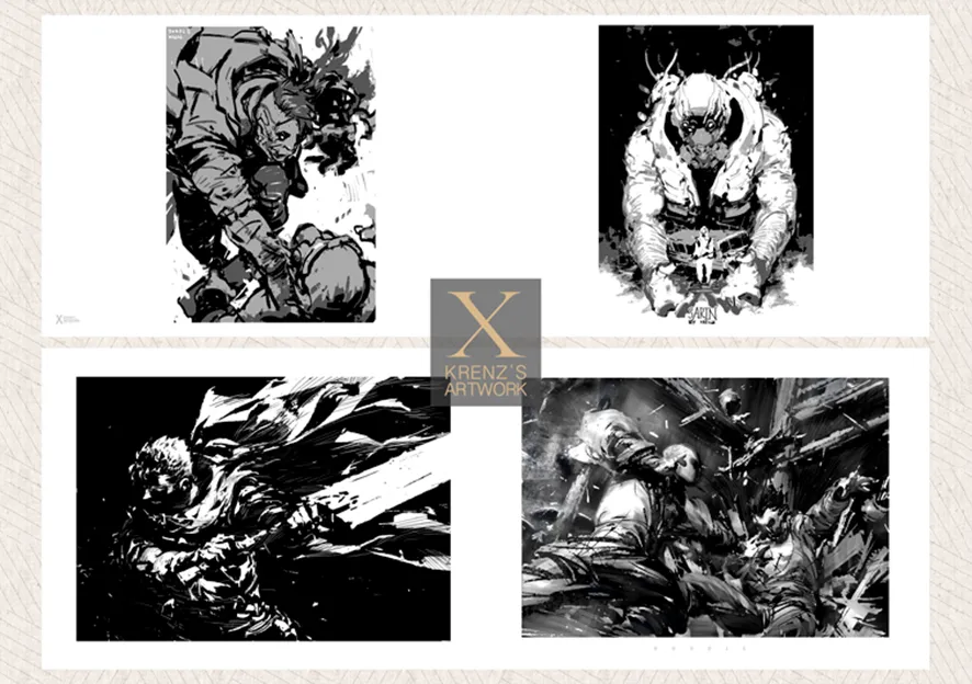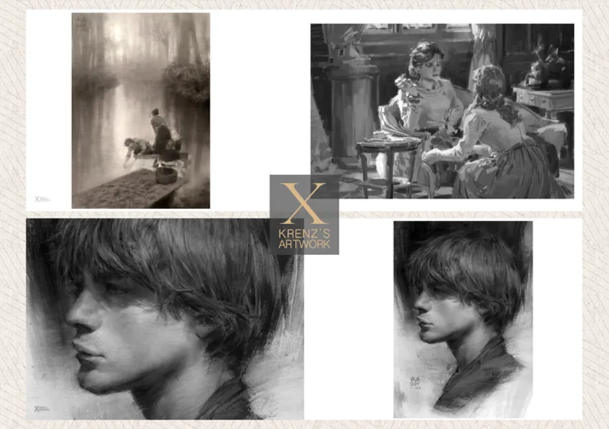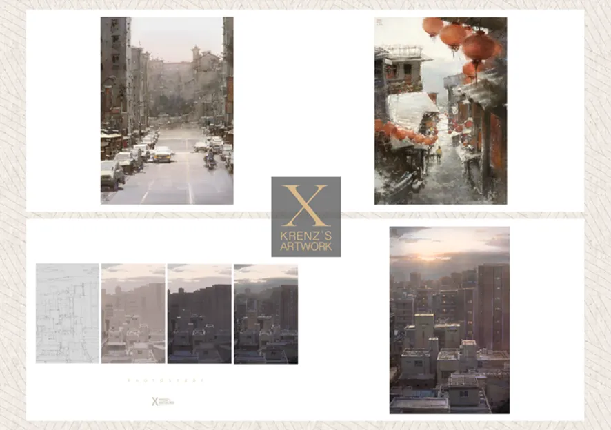 Krenz更為大量地使用排線,刻意地練習畫面中的黑白灰配置(素描關係),並嘗試安排隨機材質與紋理,讓作品在最終完成之時,呈現特有的手繪質感。