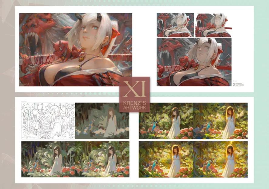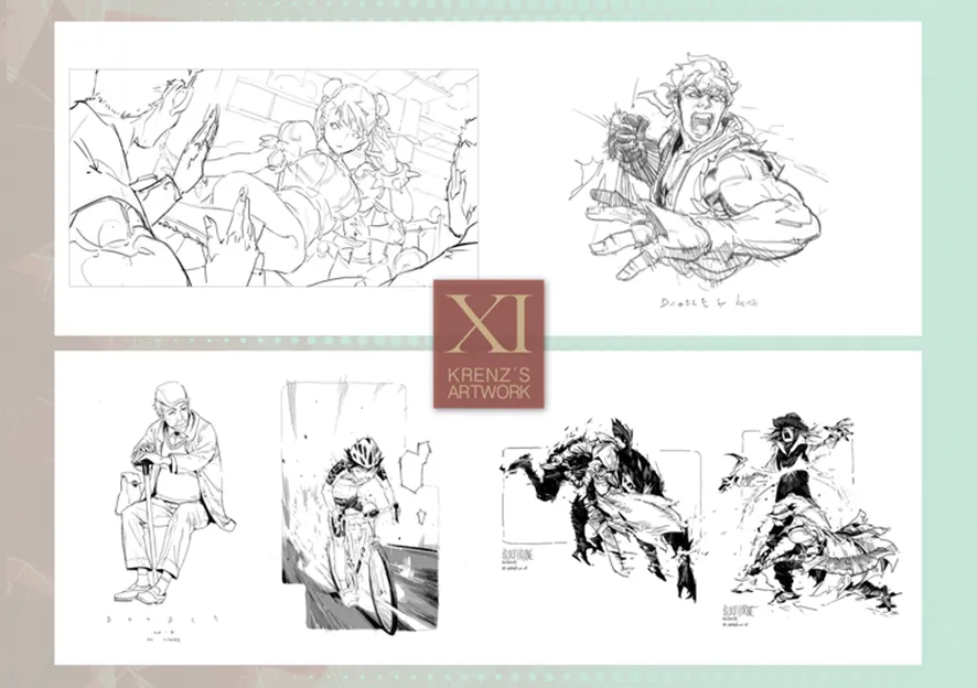 持續不斷自我學習的Krenz,到此風格逐漸完整鮮明。相較於第10集在繪圖中的「加法」,本集做了很多「減法」,可以看到整體用色更溫潤、內斂,狂放的筆觸被馴服。而線稿也別於以往,用一筆完成的繪製手法,使線條更顯俐落與生動。